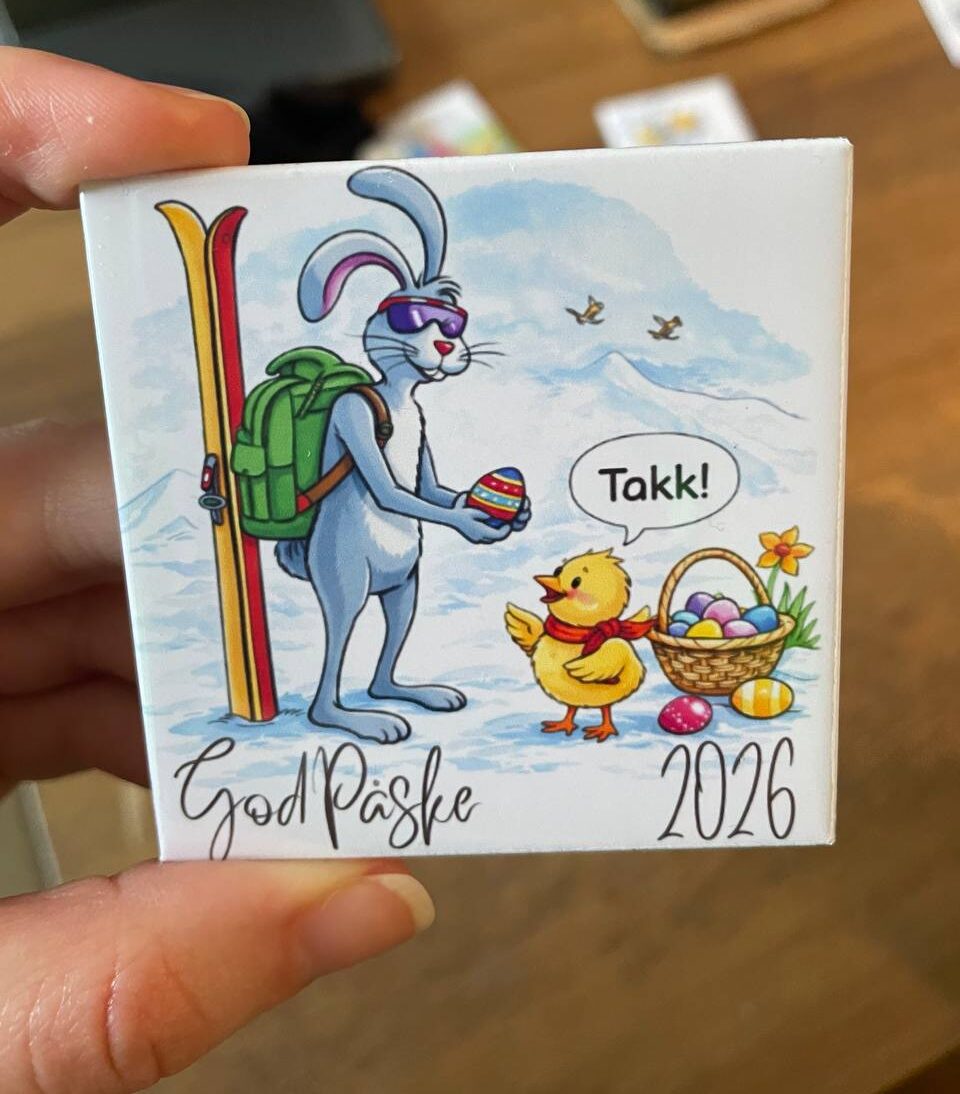 Gjør påsken uforglemmelig! En personlig påskefotomagnet med ditt bilde – perfekt til kjøleskapet eller som gave til familie og venner.